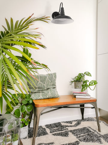 Find a space in your home where you can add a chair or bench and set it up with cozy pillows, blankets and light. Small changes to just a corner of your living space will remind you to take time for yourself.