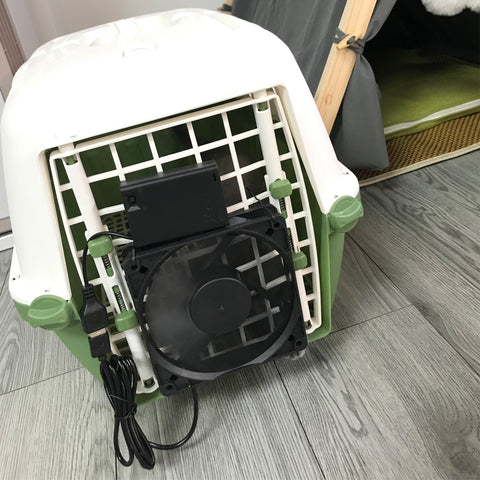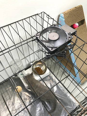 A crate fan makes car travel with your pet much more comfortable. Battery-powered fans to be a good backup when the power goes out.