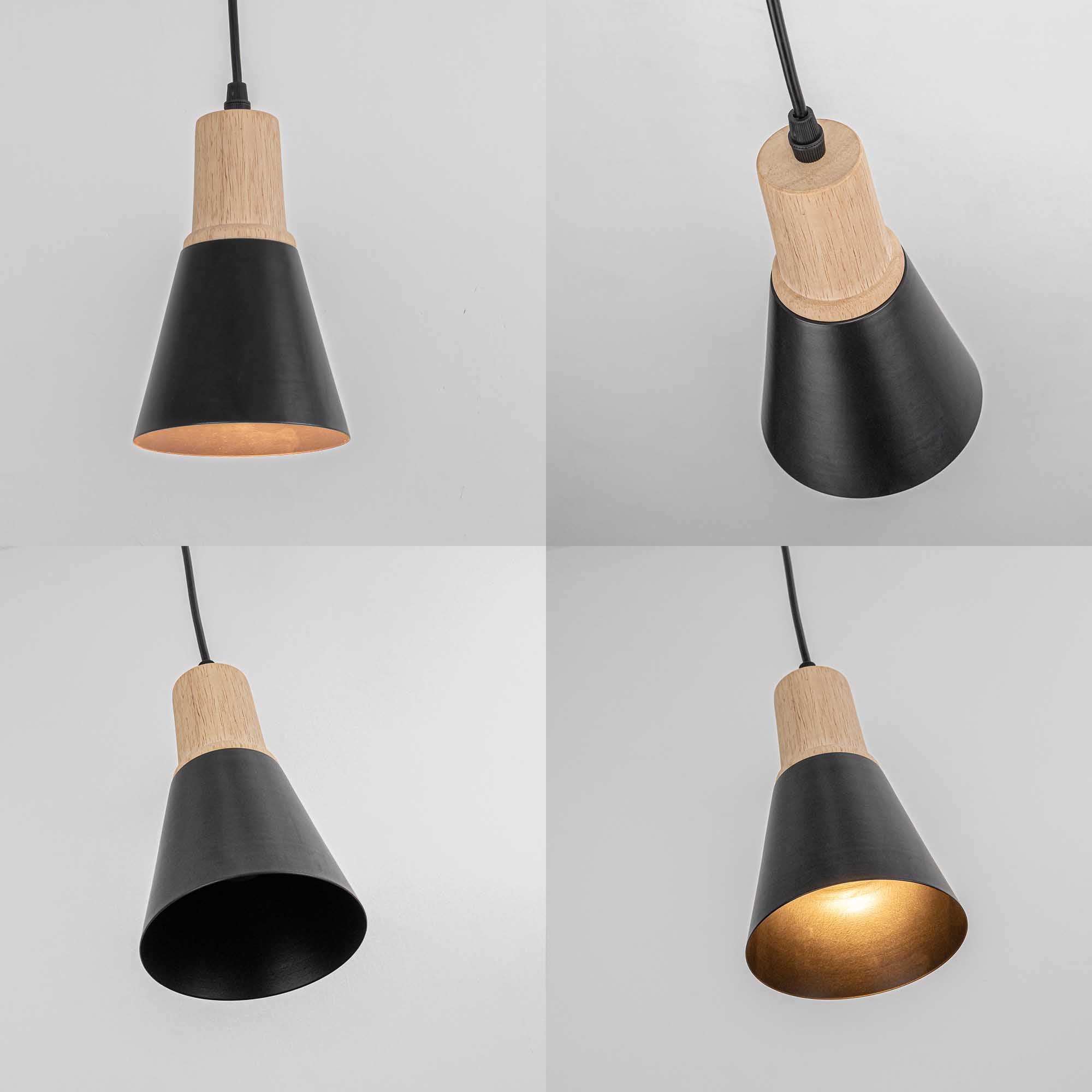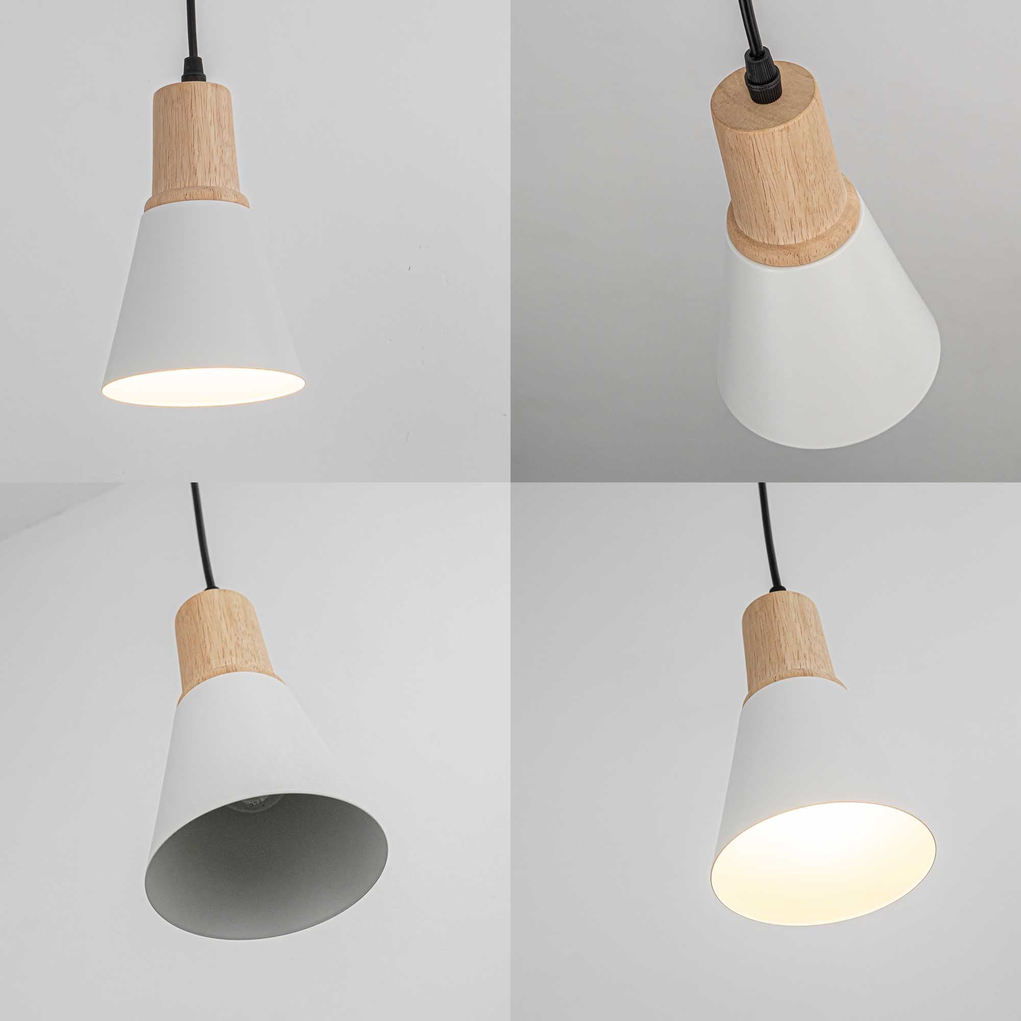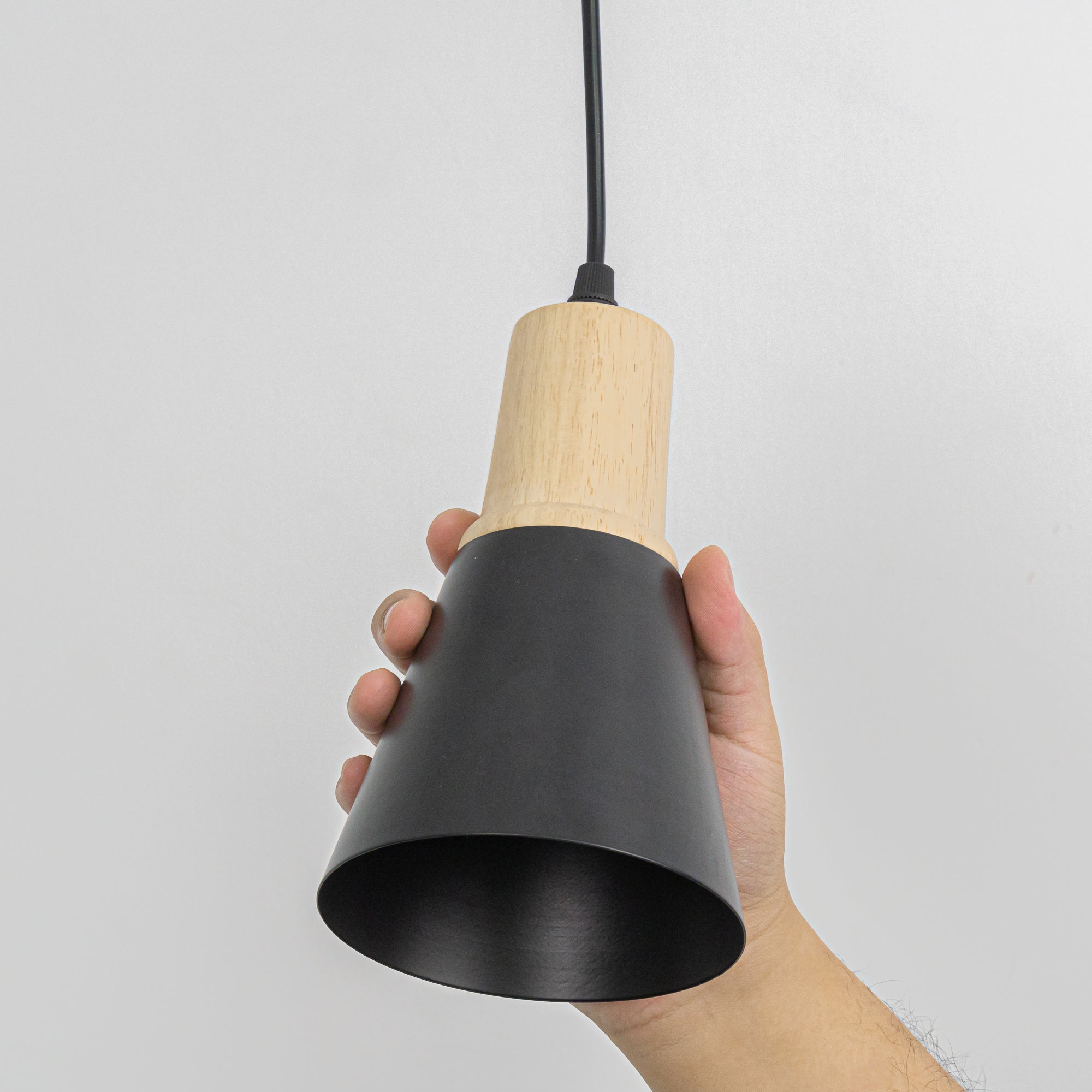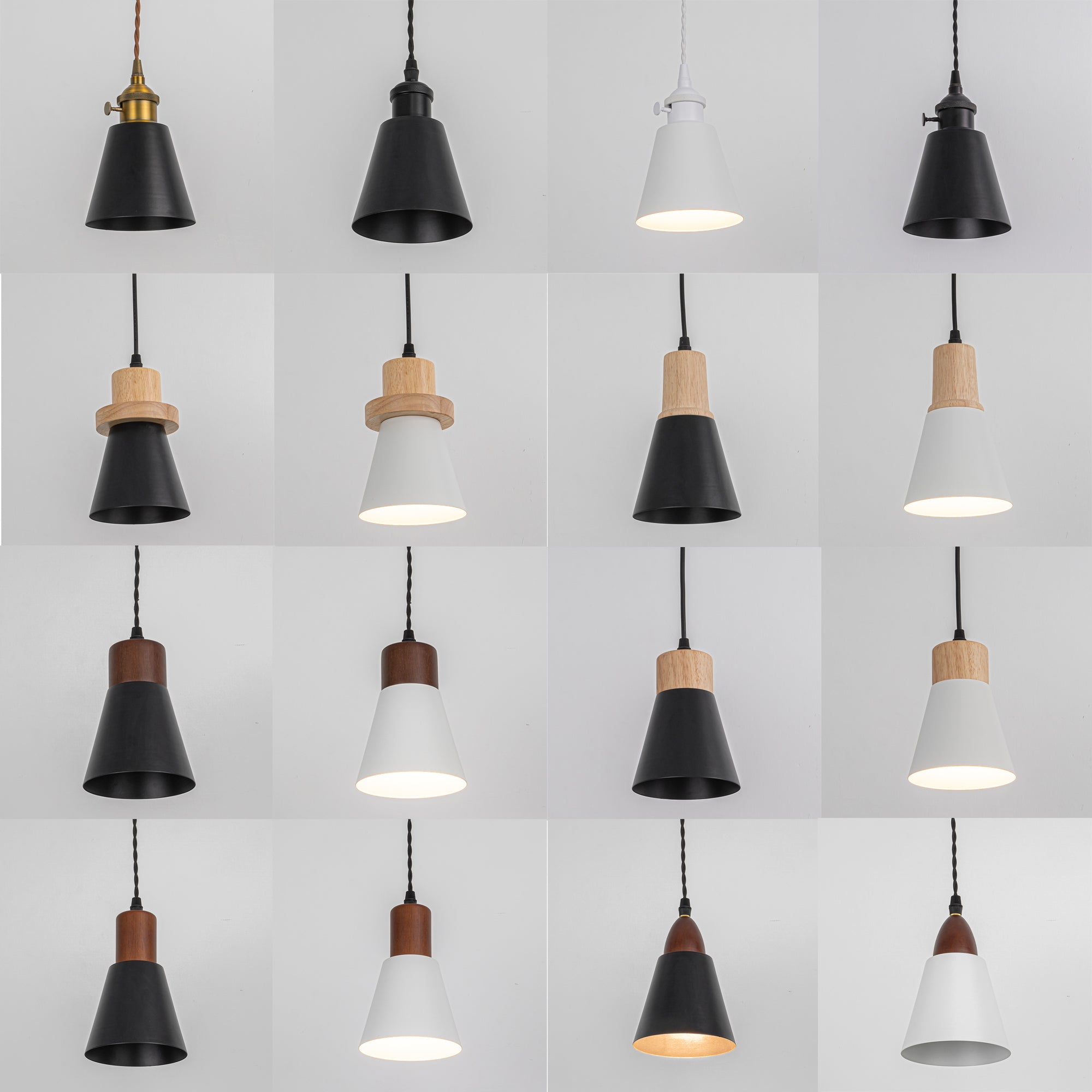 Plug In Outlet Corded Hanging Light Wooden Base Metal Black/White Shade Retro Living Lamp